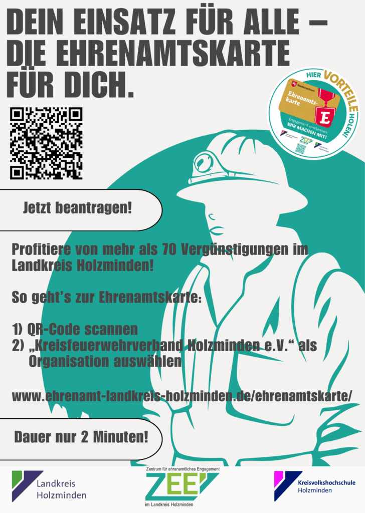 Als alltagsnahes Dankeschön möchten wir Dir die Ehrenamtskarte überreichen. Damit kannst Du ganz viele tolle Vergünstigungen und Ermäßigungen genießen – sowohl im Landkreis Holzminden als auch in ganz Niedersachsen und Bremen. Diese Vorteile gelten in Bereichen wie Kultur, Freizeit oder auch bei öffentlichen Verkehrsmitteln.